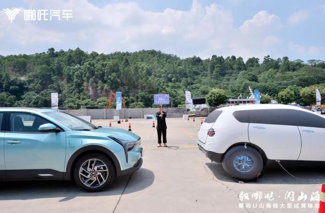 除了试驾之外,笔者还体验了哪咤U的AEB主动式紧急制动系统和APA全自动泊车辅助功能的演示。