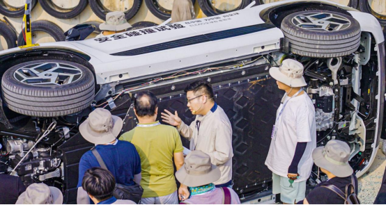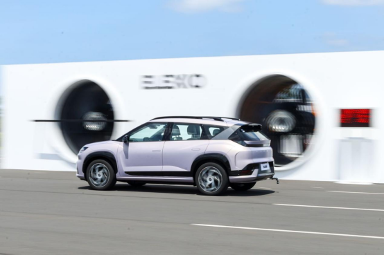 驶上全长6.2公里的高速环道,ELEXIO在180km/h巡航中展现出超越级别的稳定性。侧向风扰被低风阻车身悄然化解,方向盘仅传递细腻的路面纹理,毫无飘摆迹象。这份从容背后,是E-GMP平台航天级笼式车身的功劳和“360°Safety车身”设计,车身高强钢占比77.5%,底盘采用八横七纵梁设计,多重骨骼和高张力钢板材质,增加了车身强度从而提高了安全性。