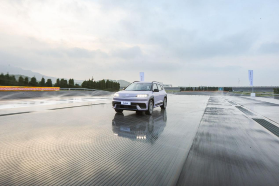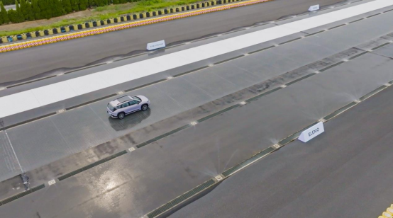 在人为制造的湿滑路上,我们让ELEXIO处于半干湿路面的不利境地,更为贴合北方冬季的用车环境,而ELEXIO如钉在路面般稳稳攀爬。此场景直击用户痛点——地下车库结冰坡道上的溜车恐惧,被技术彻底化解。