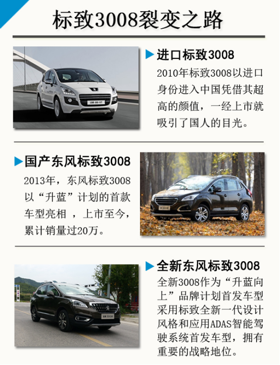 在刚刚过去的一个月,东风标致发布了面向未来5年的“升蓝向上”品牌计划,公司计划未来五年内推出18款车型。而全新3008再次被寄予厚望,将作为“升蓝向上”品牌计划的首发车型,首次采用标致全新一代设计风格量产车型和应用ADAS智能驾驶辅助系统的首发车型,那么作为三个“首发”的中期改款车型“雄狮”又有哪些“裂变”呢?